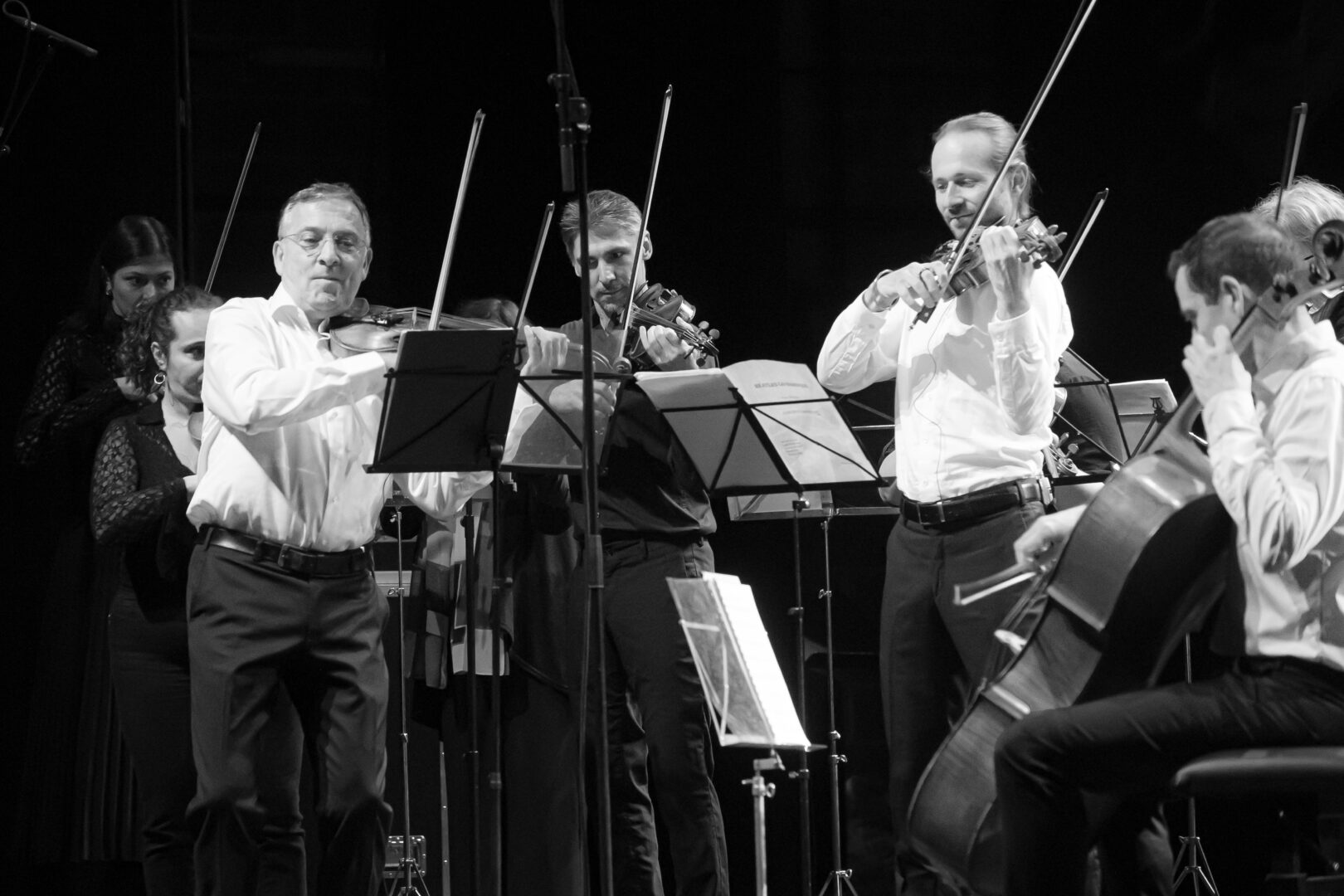 Le samedi 13 décembre 2025, le Quatuor Debussy – de retour aux Voix Intimes – a égrené les plus grands tubes des « Fab Four » en compagnie de l’orchestre de la chapelle musicale de Tournai (sous la direction de Philippe Gérard) et d’un chœur participatif de choc, dirigé par Eric Dujardin et Noé Chantry. Transpositions, transcriptions ou revisites : les musiciens ont navigué entre baroque, classique et pop-rock, pour le plus grand bonheur du public de la Maison de la Culture.
